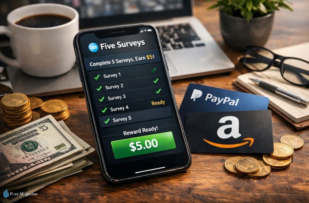 Five surveying refers to completing five qualifying surveys on the platform Five Surveys to unlock a fixed reward, usually around $5 per completed set. Instead of paying small amounts per survey, the platform groups surveys into milestones, allowing users to earn rewards once five approved surveys are finished.