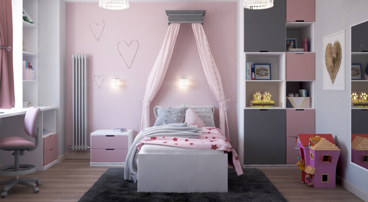Nightstands mounted to the wall clear precious floor space and simplify cleaning routines. Floating shelves can substitute for dressers when you’re really squeezed for room. Not everyone loves the aesthetic, but functionality wins in tight quarters.
